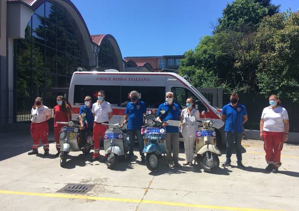 Ci sono altre due realtà che hanno voluto ringraziare la Croce Rossa. In primis il Gruppo Fiamme in Vespa, che raccoglie intorno a sé carabinieri in servizio o in congedo appassionati della Vespa o simpatizzanti: «Durante la pandemia abbiamo raccolto, vendendo delle patch di stoffa a tema Coronavirus, 825 euro, che doniamo alla Cri per ringraziare tutti i volontari per quanto hanno fatto e stanno facendo in questo momento così delicato», racconta Claudio Ventimiglia, carabiniere in congedo nonché sindaco di Golasecca. Il gruppo conta circa una settantina di appassionati vespisti Varese e dalla fondazione (avvenuta nel 2017 su idea di Romeo Schiavone) ha partecipato a raduni nazionali e internazionali a Genova, in Francia, in Ungheria e in Germania.